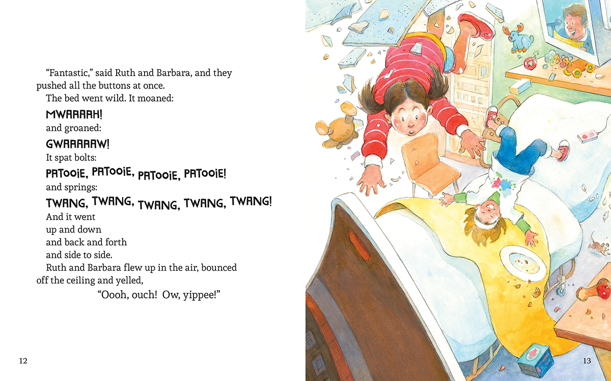 Once there, the girls are left to wait, and wait . . . and WAIT. They are so bored that they start looking around and notice that the hospital bed has so many BUTTONS.