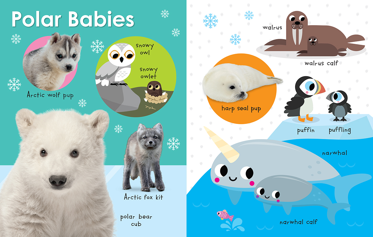 Meet Canada Goose goslings, Arctic wolf pups, pufflings and more! Colourful photography and cute illustrations show baby animals and the adults they will grow up into, in Canada and around the world. Specially created for young learners, this fresh, eye-catching board book is developed in conjunction with educators and Canadian editors to introduce first words, habitats and animals.